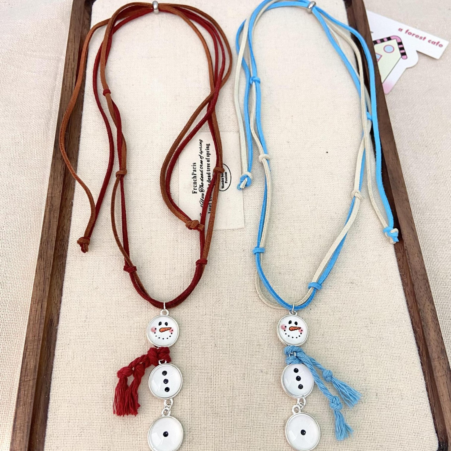 Autumn and Winter Cute Snowman Pendant Women's Christmas Decoration Sweater Niche High-end All-match Sweater Woven Rope Necklace