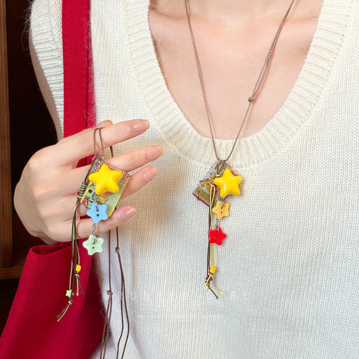 Childlike Contrast Color Star Necklace Women's Cute Cartoon Niche Sweater Chain Long Leather Rope Halter Sweater Chain Accessories