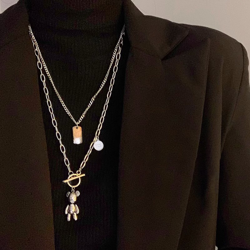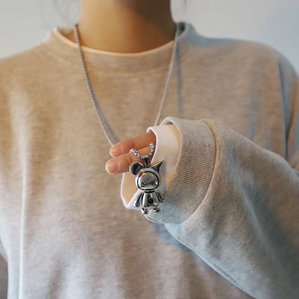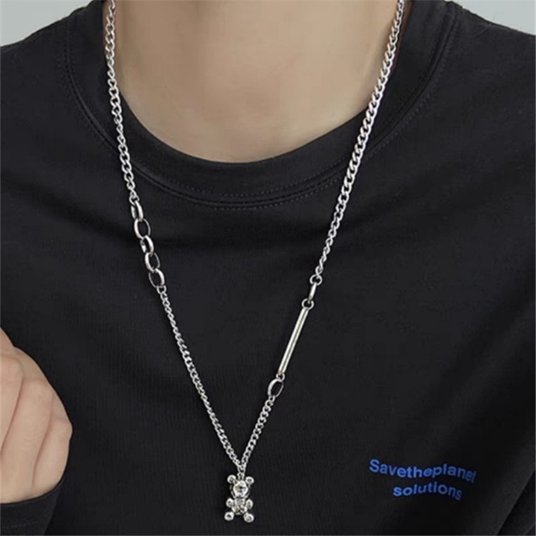 Bear titanium steel sweater necklace for girls hip hop high-grade long accessories trendy all-match autumn and winter sweater chain for men