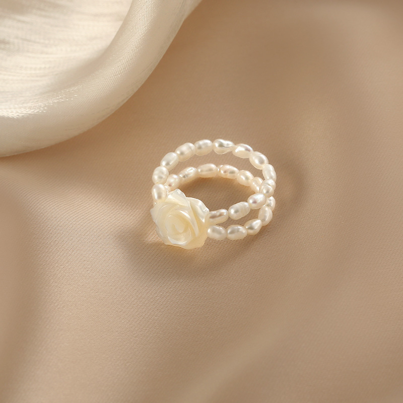 Qiqi Rose Fashion Bead Ring Double Layer Design Cute Ins Style Exquisite Bead Finger Ring Elegant Retro Women