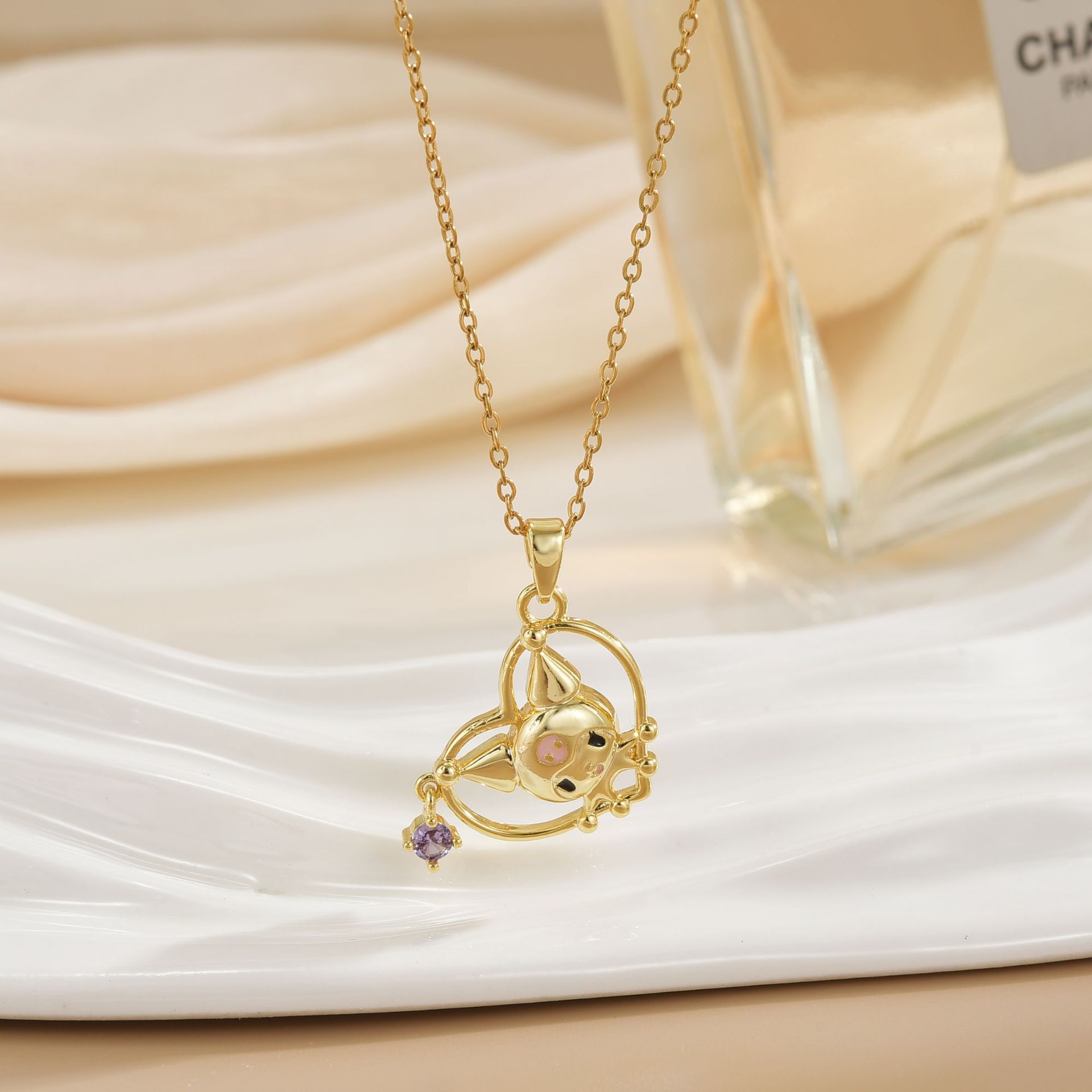 Cute Cartoon Doll Necklace Women's Light Luxury Niche Design Sense Student Titanium Steel Clavicle Chain 2024 Winter New