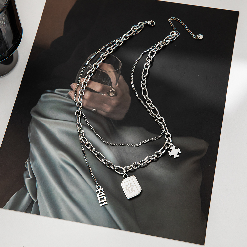 Personalized Chinese Style Trendy Necklace ins Hip-Hop All-Match Couple Titanium Steel Double-Layer Tassel Pendant Sweatshirt Chain Accessories