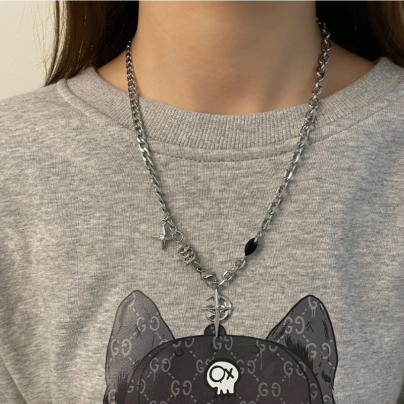 Star Moon Cross Mang Star Stitching Necklace Men's Hip Hop Niche Design High-end Retro Autumn and Winter Fashionable Sweatshirt Chain