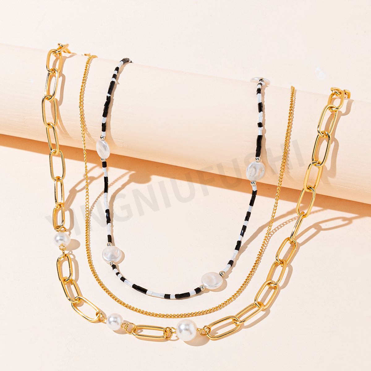 European and American Fashion Jewelry Light Luxury Niche Rice Bead Necklace Women's Design Sense Sweatshirt Neck Chain Metal Clavicle Chain Accessories