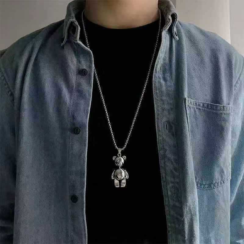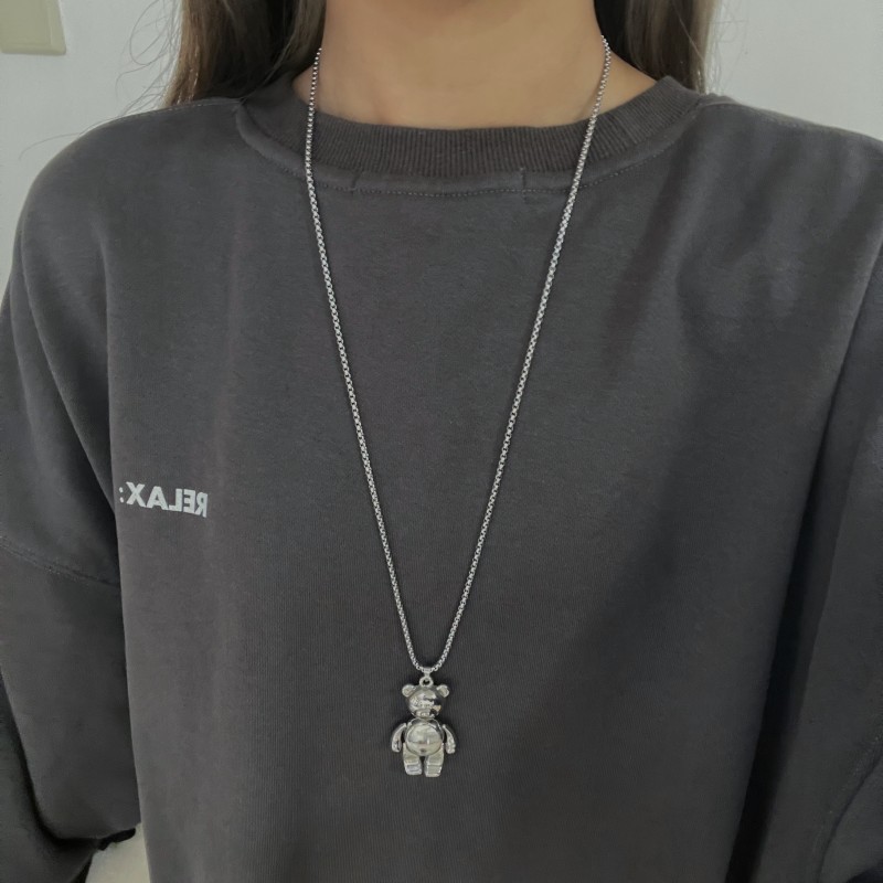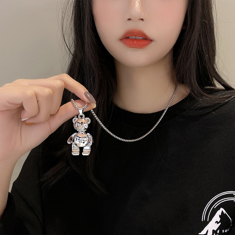 Cool style cute cartoon bear pendant necklace hip hop fashion hot girl niche design sweater sweater chain
