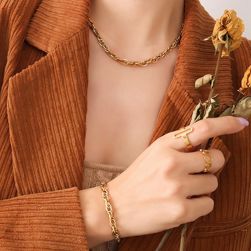 European and American hip-hop fashion ins non-fading versatile thick chain necklace bracelet suit winter new jewelry