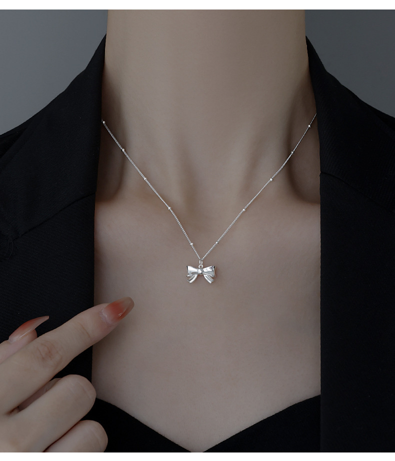 925 sterling silver bow pendant necklace sweater sweater chain suitable for girls in winter clavicle chain temperament necklace