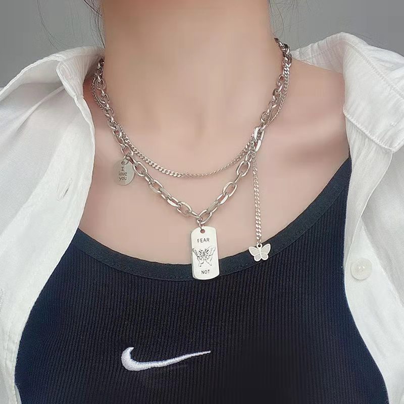 Titanium Steel European and American Fashion Multi-layer Necklace Sweet Butterfly Shape Pendant Neck Chain Creative Letter Sweater Chain for Women