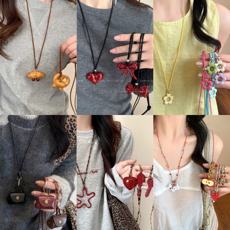 Dopamine Color Apple Braided Necklace Women's 2025 New Cute Long Halter Sweater Chain Pendant Accessories