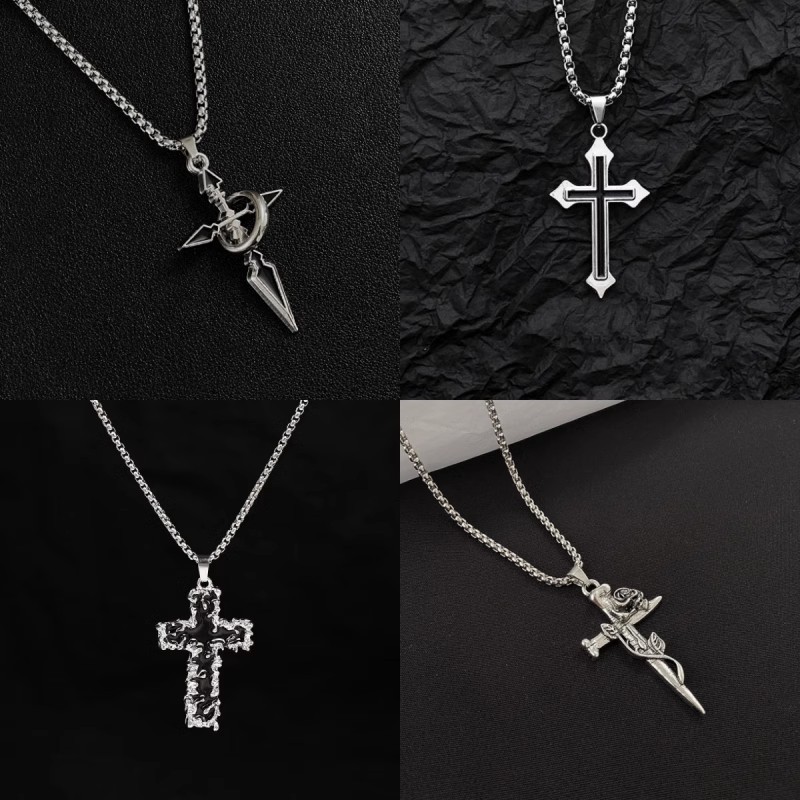 Men's Trendy Cross Pendant Necklace Versatile Chain Accessory Men's Trendy Sweatshirt Pendant Titanium Steel Chain