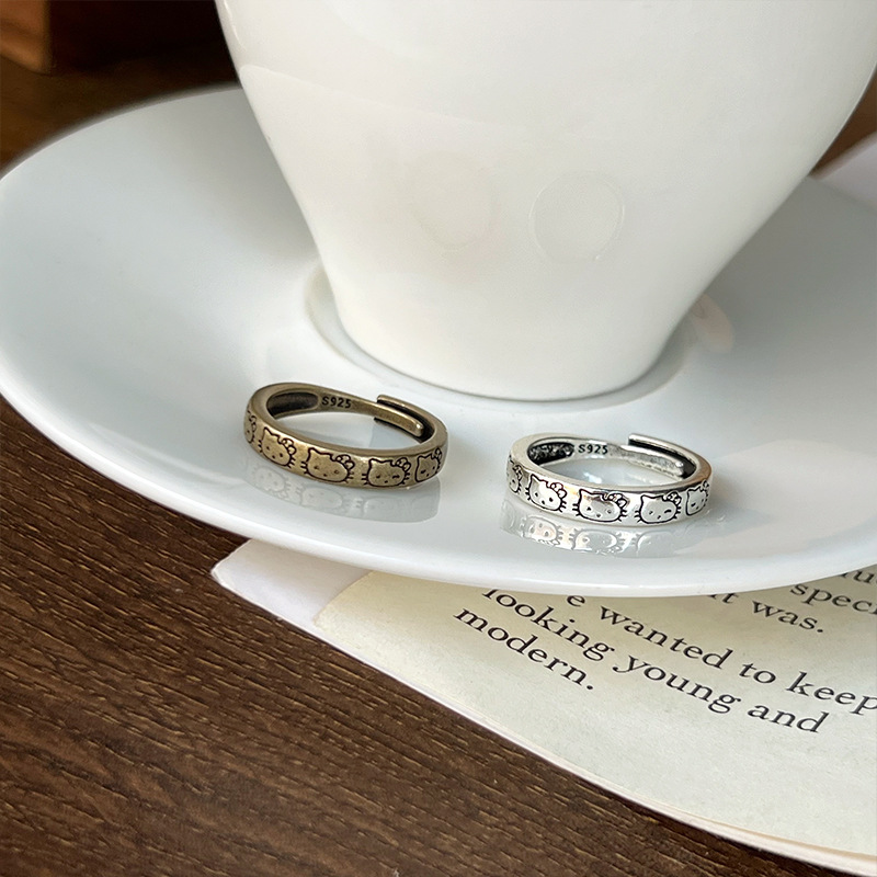Lanzhi Cartoon 925 Sterling Silver Ring for Women Thai Silver Jewelry Kitty Cat Ring Niche Design Ins Index Finger