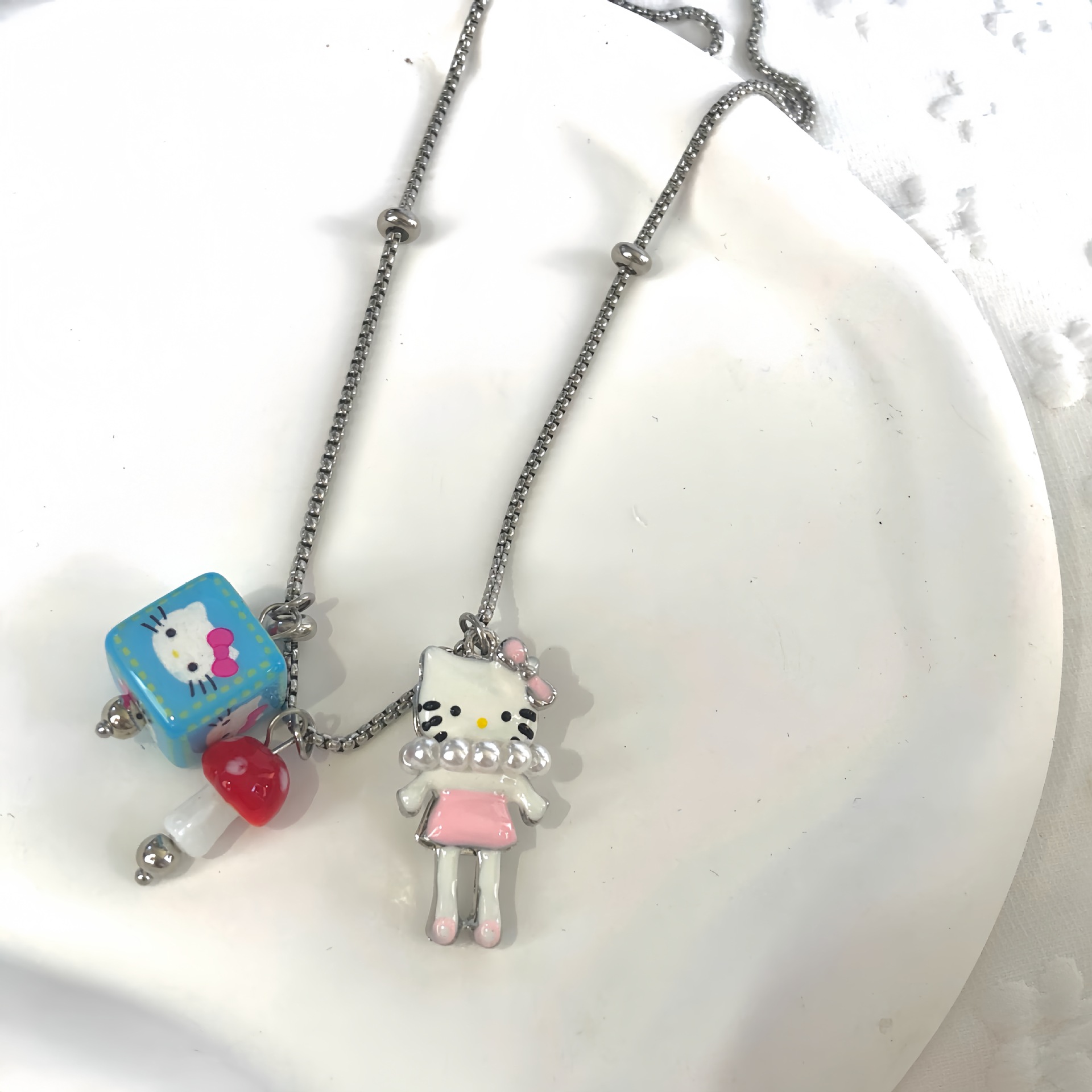 Cute Cartoon Kt Cat Niche High-End Necklace Sweater Chain Sweet and Cool Girly Style Versatile Design Sweatshirt Chain
