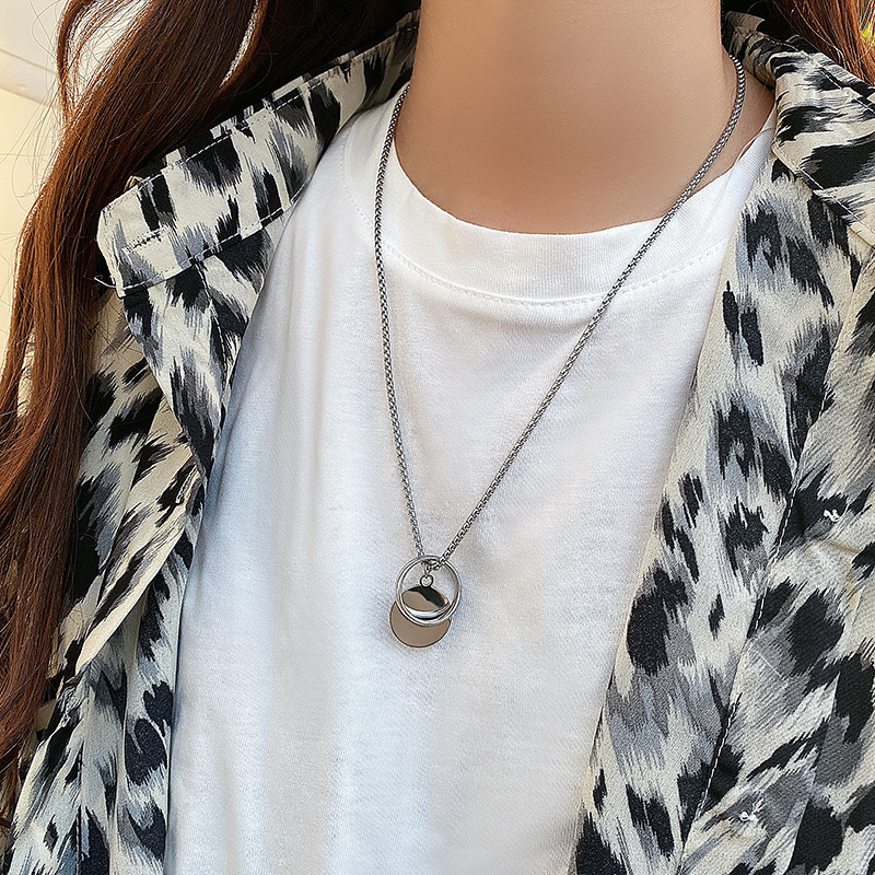 Ring necklace ins cool style personality simple trendy titanium steel hip hop pendant round brand ring chain sweater chain