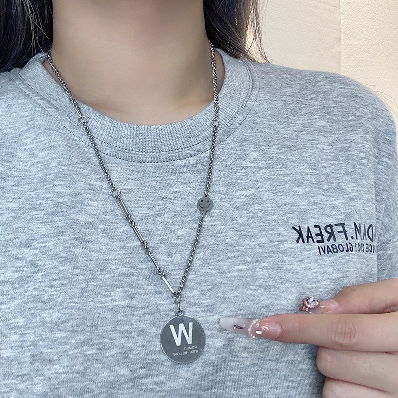 Round Brand Letter W Titanium Steel Necklace Men and Women Street Fashion Necklace Fashion Personality All-match Sweat Chain Hip-hop Necklace