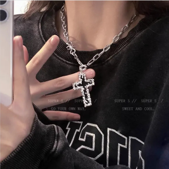 Punk Hip-Hop Cross High-End Necklace for Women, Long Hip-Hop Cool Sweater Chain, Sweatshirt Accessory for Men, Trendy