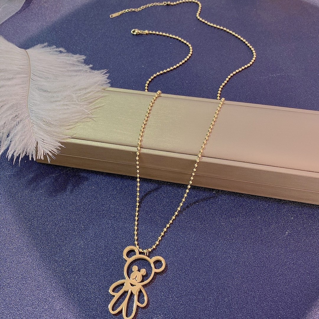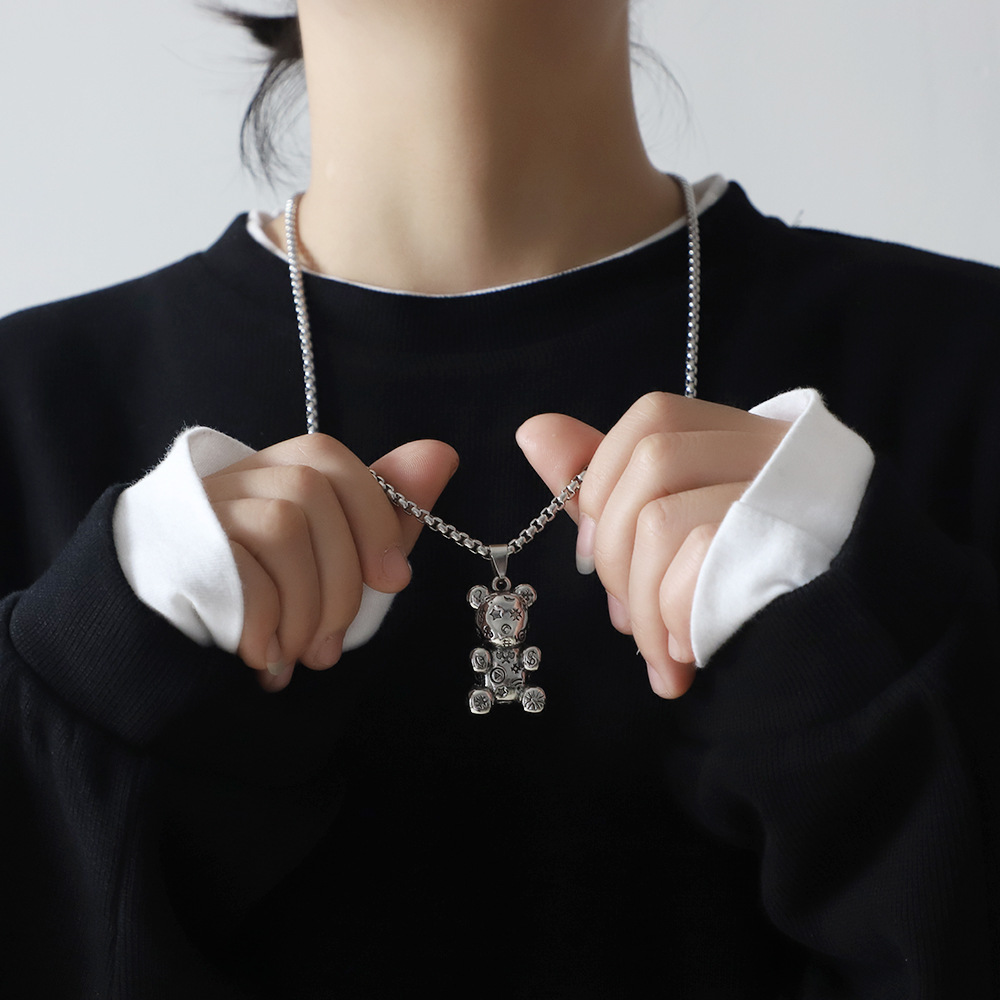 Titanium Steel Unisex Hip-Hop Necklace Female ins Cute Cartoon Mini Bear Doll Pendant Niche Sweater Sweater Chain
