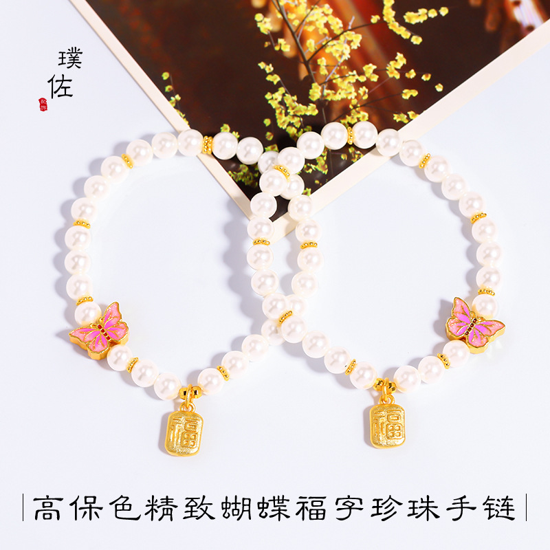 Gold shop with strong color retention Vietnamese gold burning blue butterfly pearl lucky bracelet bracelet diy all-match hand ornaments for women