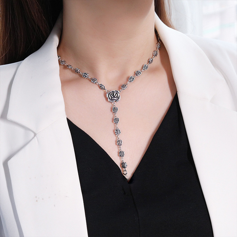 2022 New Heavy Industry Rose Y Necklace Thick Textile All-match Necklace Fashion Fashion Hong Kong Style Women Necklace