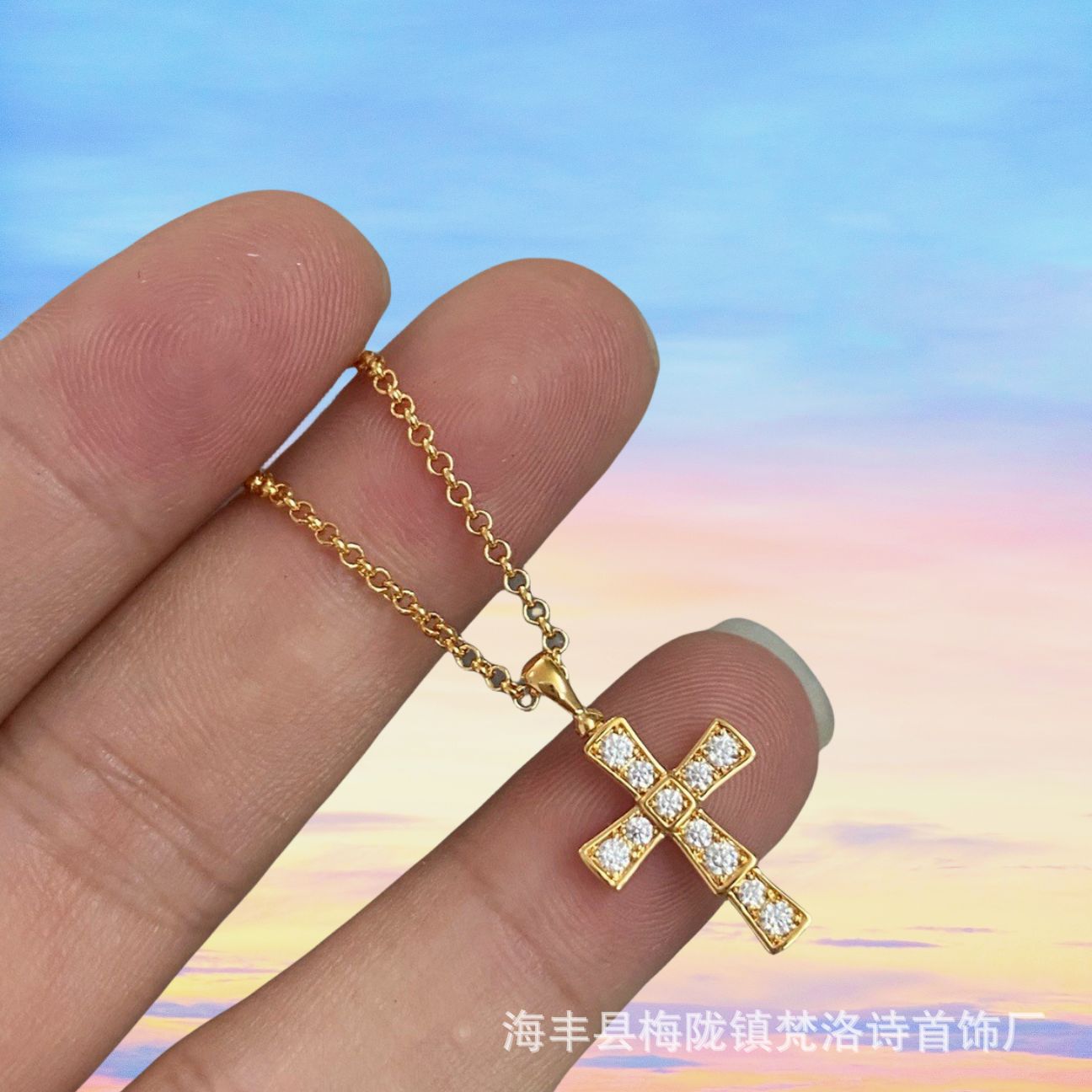 V gold diamond cross necklace thick version thick chain height level fashion online popular product factory direct sales