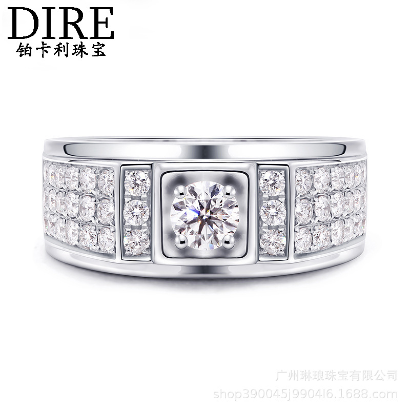 Hot sale imported imitation moissanite ring men's bright smooth round ring thick wide version Noble domineering men's ring