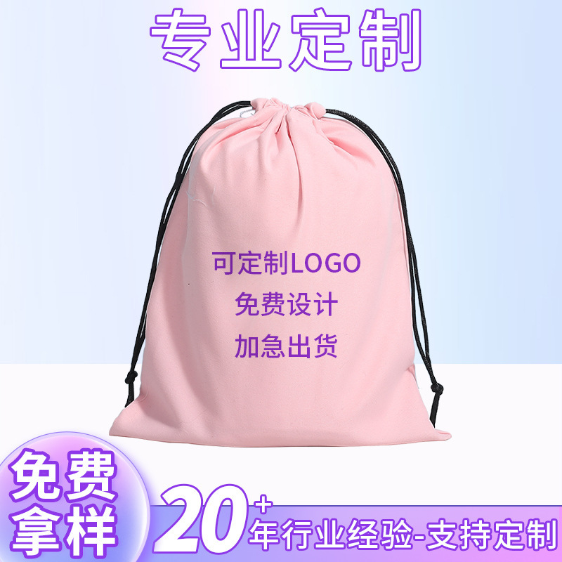Custom Logo Storage Drawstring Pouch Thick Velvet Bag for Coins and Jewelry, Cloth Bag for Accessories