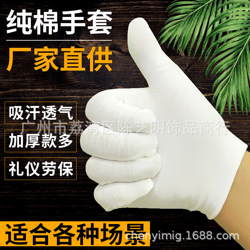 Pure cotton suede nano gloves white factory direct supply labor protection etiquette driving wheel play jewelry sweat absorption increase thick
