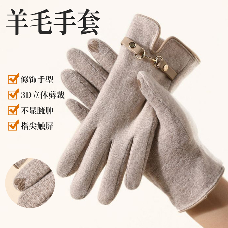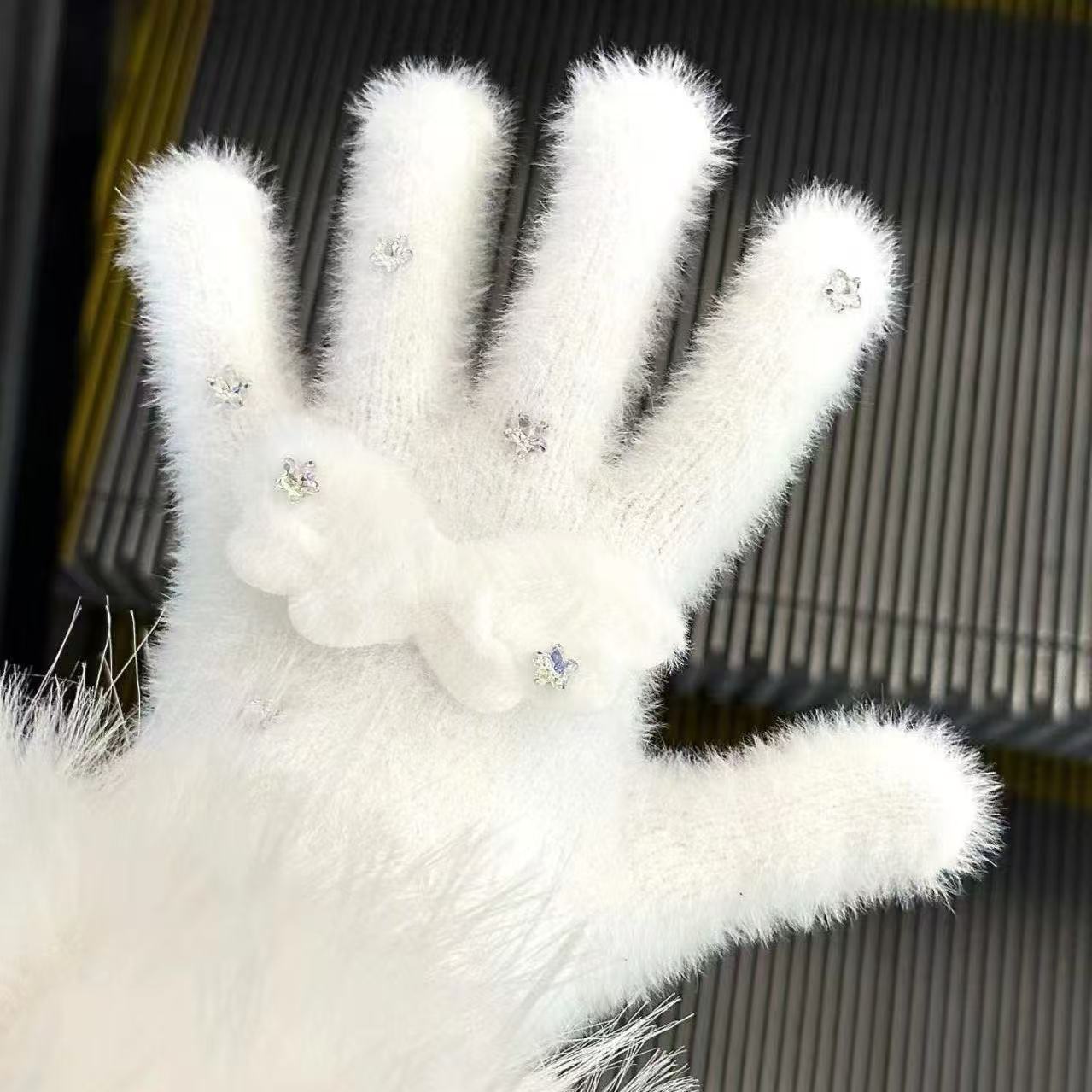 Cross-Border Wool Gloves, Cute, Thickened, Warm and Cold-Proof, Touch-Screen Cycling Gloves, Student Driving Finger Gloves