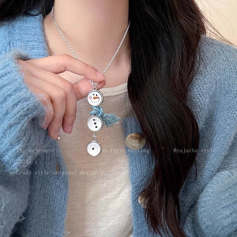 Autumn and Winter Cute Snowman Pendant Necklace Women's Christmas Decoration Sweater Chain Niche High-end All-match Sweater Chain