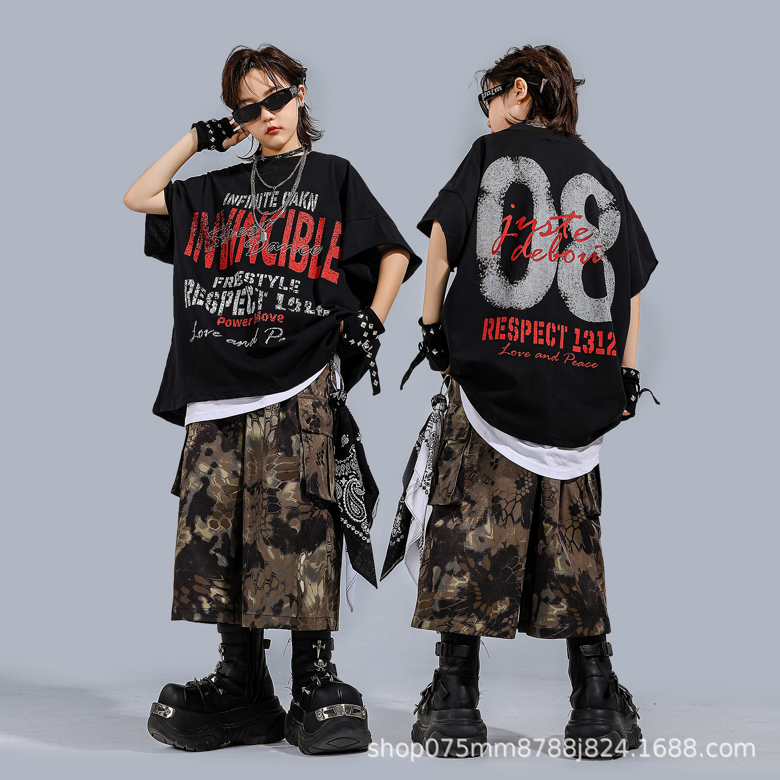 Children's Street Dance Trendy Clothing Boys' Hip-Hop Suit Cool and Handsome Loose Street Fashion Brand Kidsren's Clothing Kidsren's Hiphop Performance Clothing
