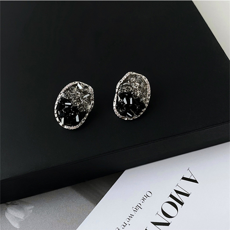 New Black Sea Salt Winter Coat Earrings Irregular Gem Cool Handsome Hong Kong Style Elegant Black Earrings for Women