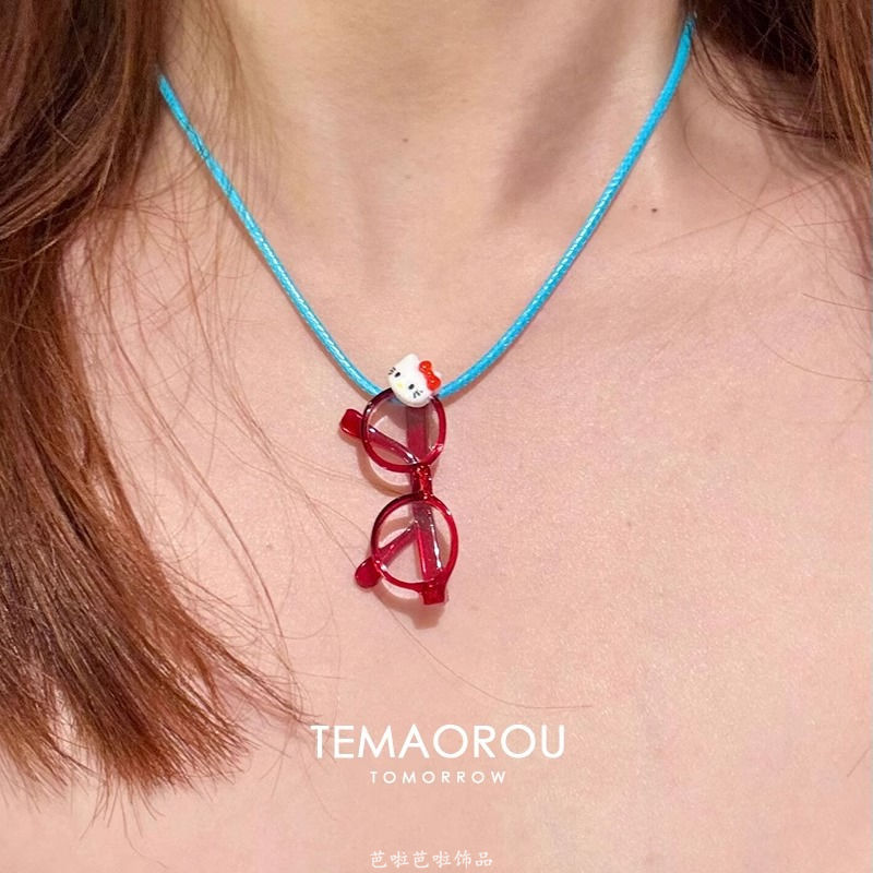 Knock on Cute! Kitty Cat Glasses Pendant Necklace Women's Spring and Summer New Halter Accessories Sweatshirt Chain Necklace