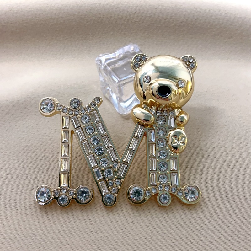 European and American New M letter teddy bear brooch female poet Crystal Diamond craft high-end elegant coat suit