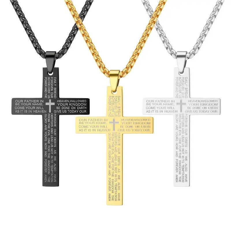 European and American cross-border trend new stainless steel necklace men and women personality Joker titanium steel cross pendant jewelry wholesale