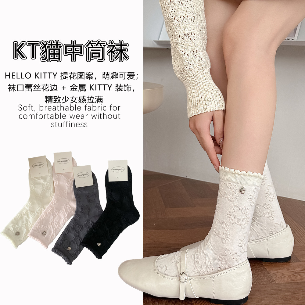Hello Kitty Socks for Women, Lace Slouch Socks, Cartoon Kitty Pendant Cotton Socks, Cute Mid-Calf Socks for Autumn and Winter