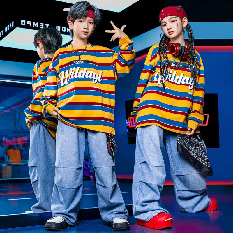 Street Dance Kidsren's Trendy Clothing Suit Boys Cool and Handsome Drum Performance Clothing Kidsren's Hiphop Performance Clothing Kidsren's Clothing Women