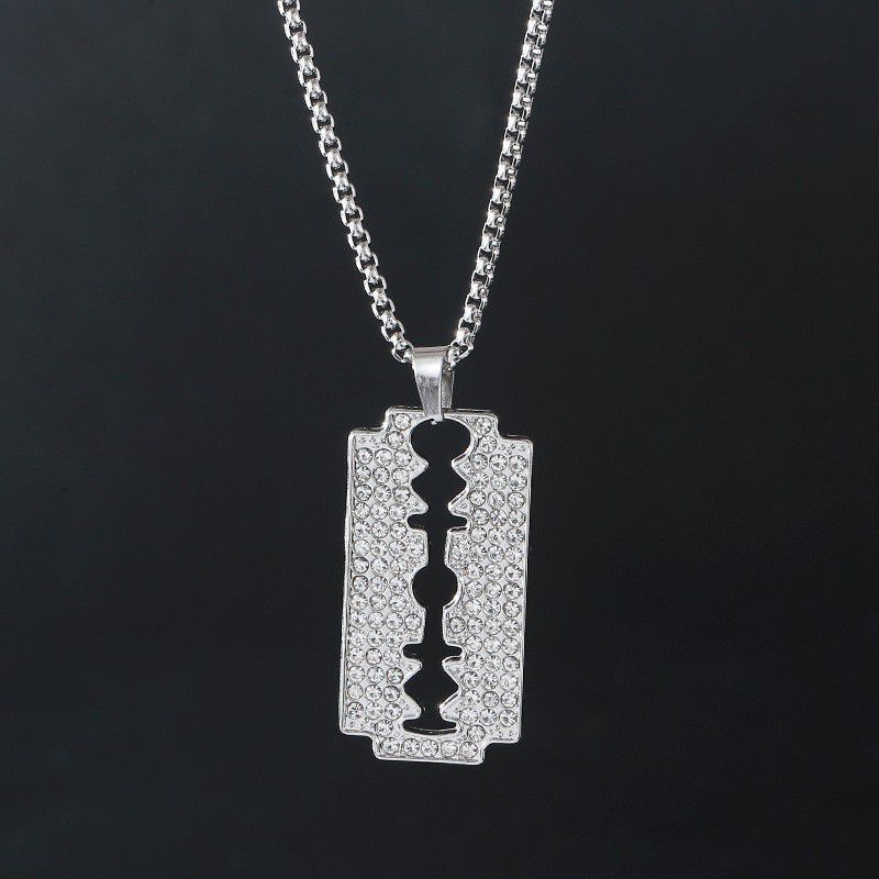 New European and American Hip-Hop Trendy Sweatshirt Chain Retro Fashion Full Diamond Blade Niche Design Necklace Pendant Jewelry