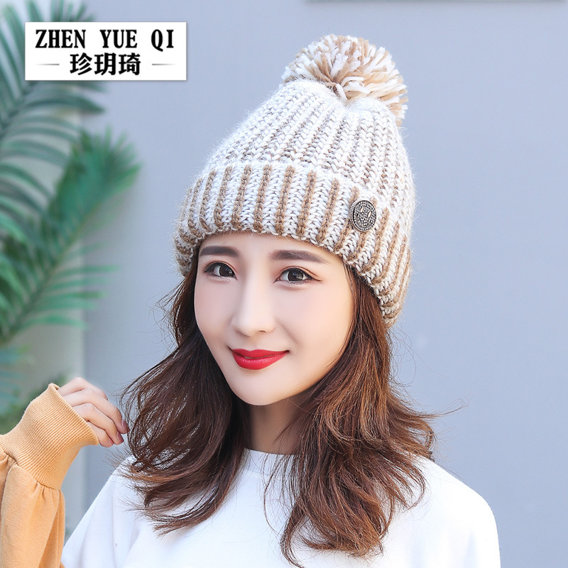 Zhenyueqi Winter Hat Women's Cute Outdoor Warm Knitted Hat Fashion Water Diamond Smiley Ear Protection Wool Hat