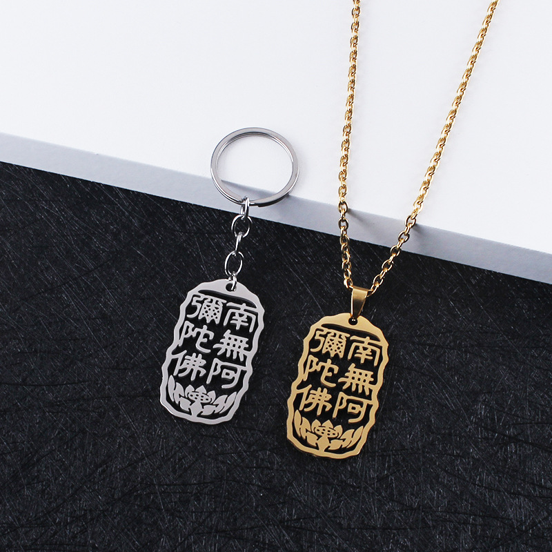 Hollow Nanwo Amitabha Necklace Waterproof Pendant Men's and Women's Stainless Steel Keychain Bag Hanging Ornaments Hoodie Accessories