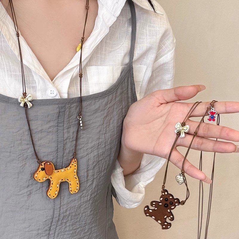 Handmade Yellow Puppy Woven Rope Necklace Women's Cartoon Cute Sweater Chain Niche Unique Long Sweater Chain