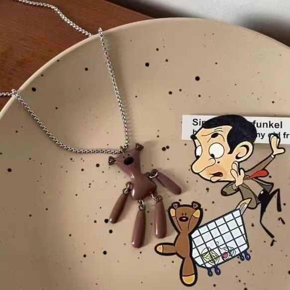 Mr. Bean teddy bear necklace sweater chain female ins hip hop design sense niche long titanium steel sweater chain male