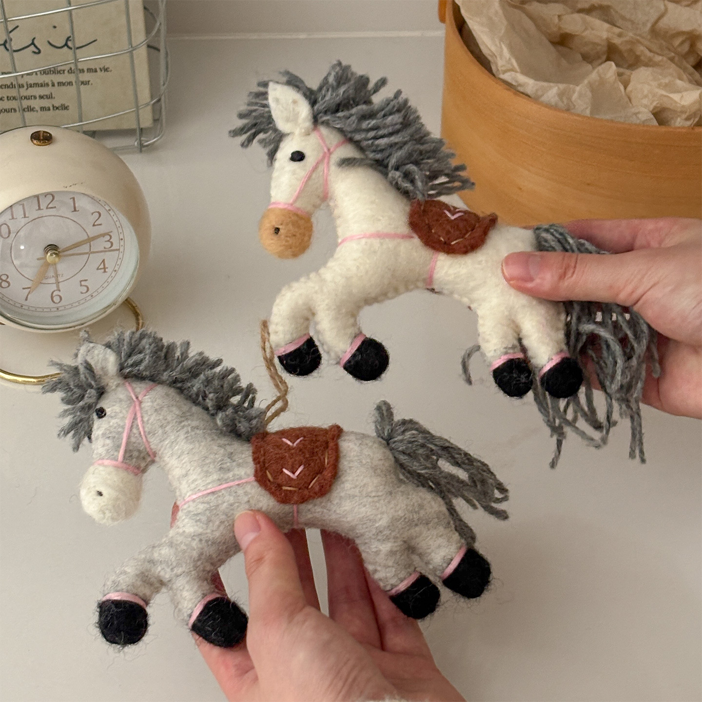 Nepalese Running Pony Wool Felt Handmade Bag Pendant, Creative Year of the Horse Ornament Pendant Accessory
