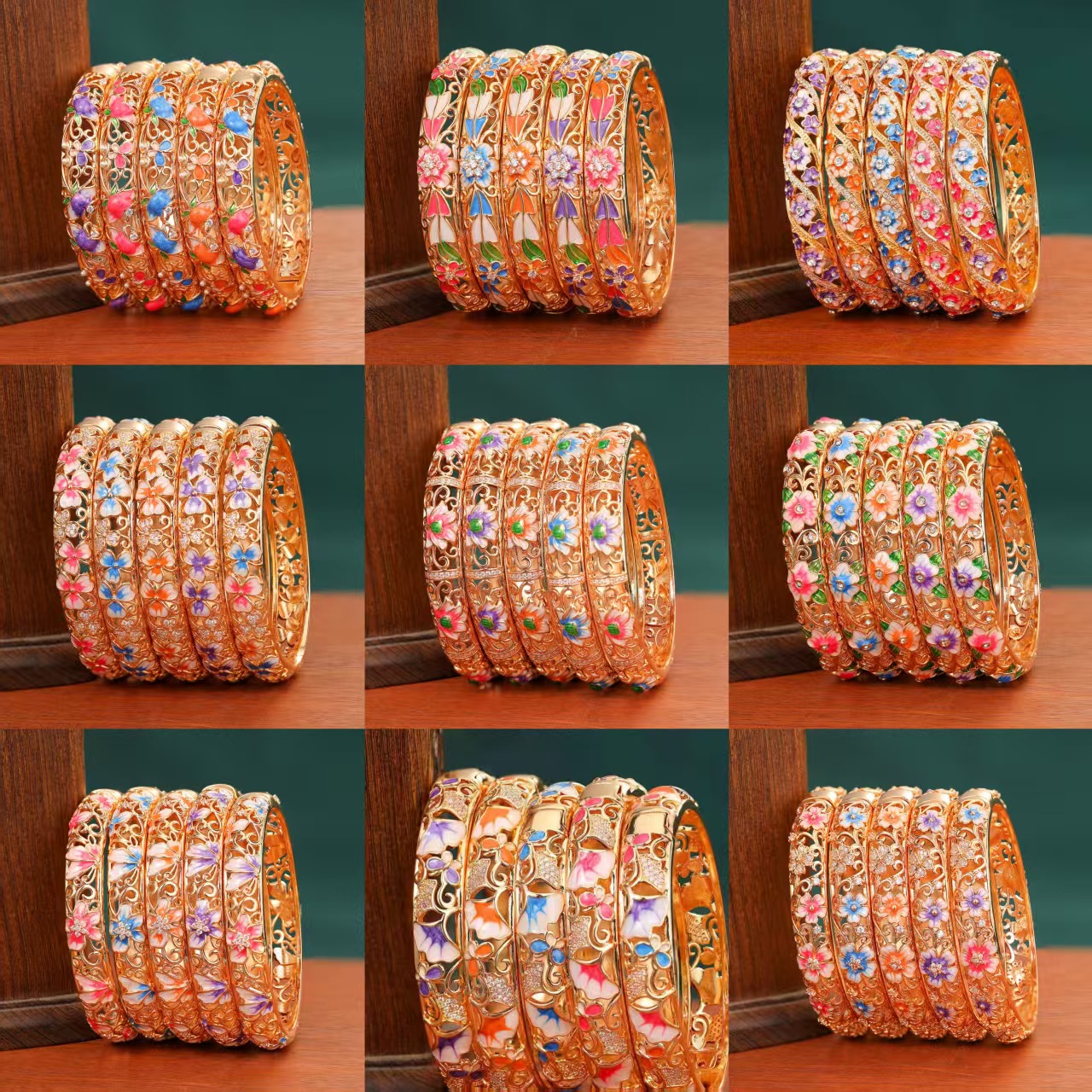 Weidni Cloisonné Enamel Oil-Dropping Flower Classy Bracelet Retro Trendy Elegant Classy Jewelry Wholesale