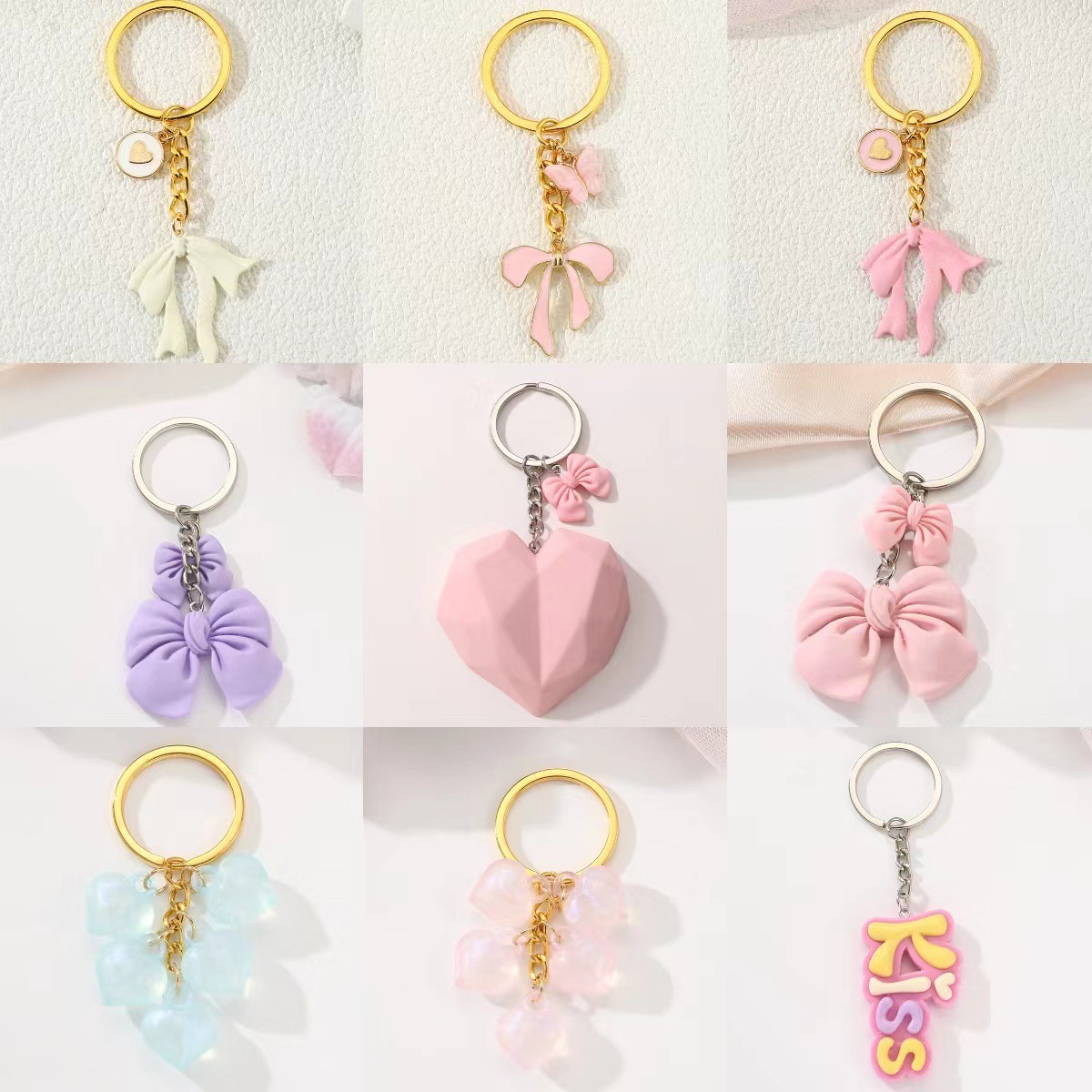 Winter New Pendant Candy Color Love Bow Flower Letter Pendant Cross-Border Valentine's Day Keychain