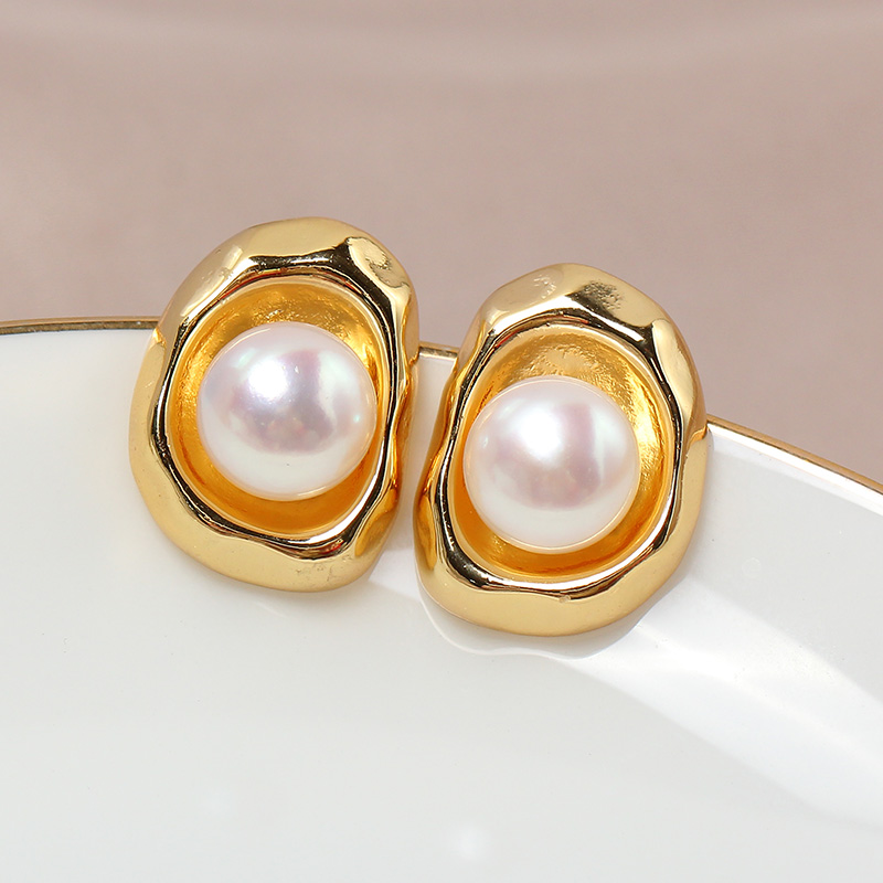 Copper-Plated Real 18K Gold Semi-Enval Glossy Pearl Earrings S925 Silver Needle Earrings Thick Accessories DIY Accessories for Women