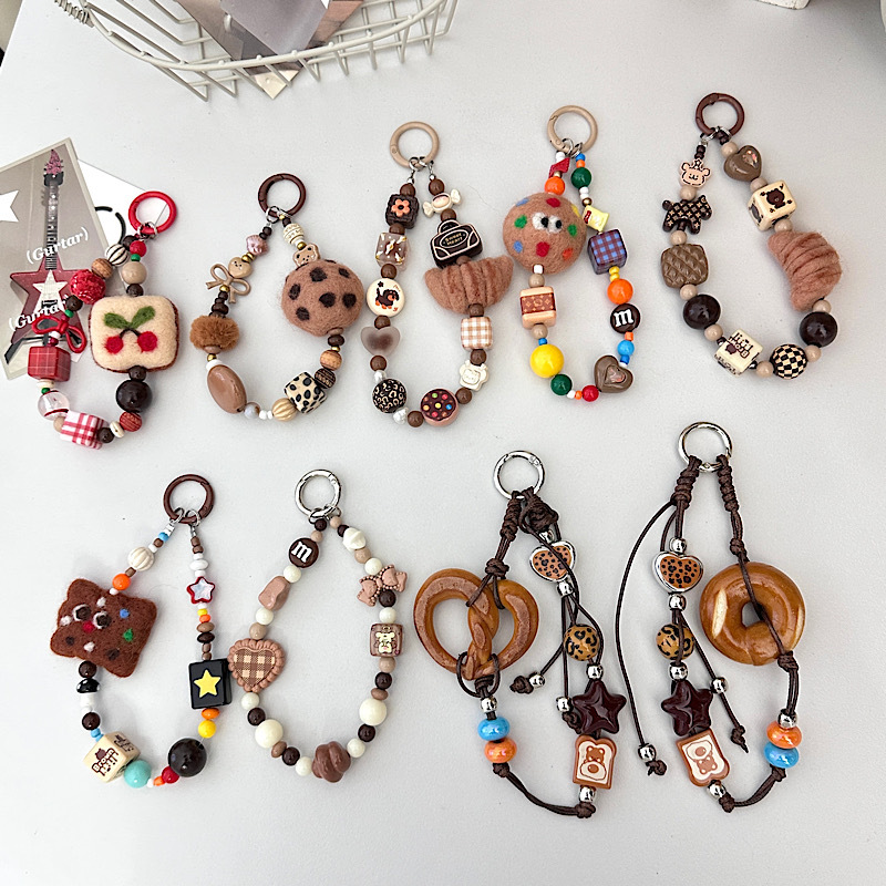 Ins Style Cookie Mobile Phone Chain Wool Felt Plush Pendant Girl Toast Bread Mobile Phone Hanging Chain Ccd Camera Pendant