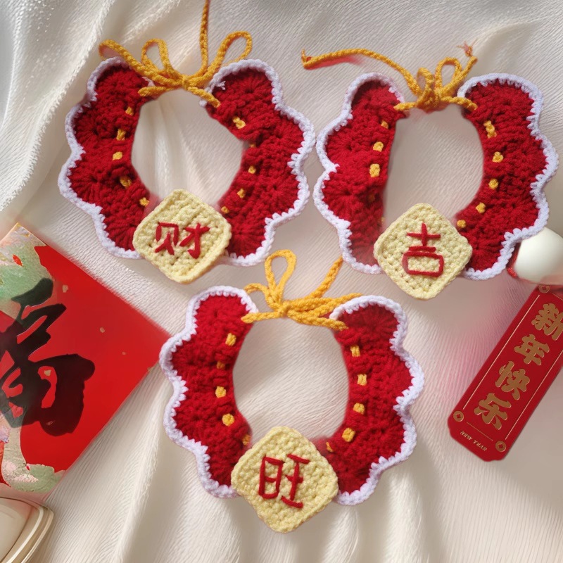 Pet New Year Knitted Scarf Fortune Collar Spring Festival Decoration Cat and Dog Crochet Warm Saliva Towel