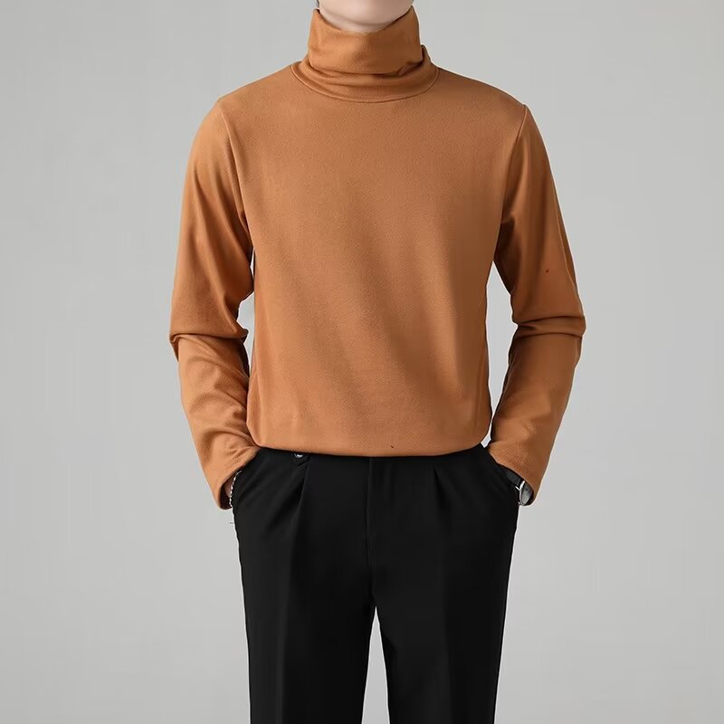 Brown High-Neck Base Layer Men's Autumn and Winter Thermal T-Shirt Long-Sleeve Trendy Slim-Fit Top Comfortable and Warm Men's Inner Wear T-Shirt
