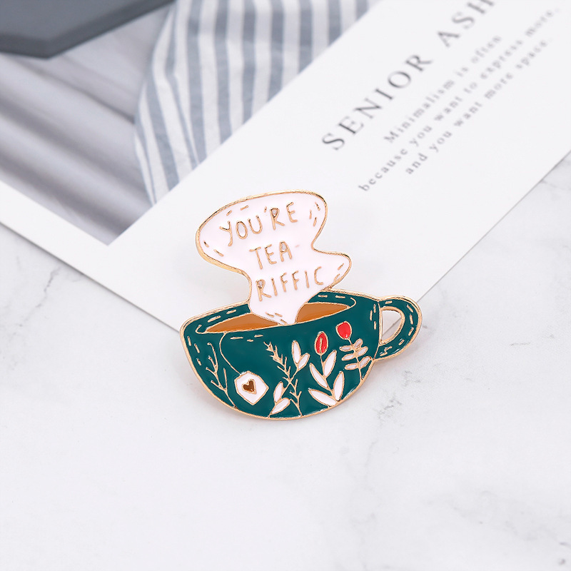 Cartoon Cute Fun Coffee Cup Alloy Brooch Flower Cup Corsage T-shirt Jacket Sweatshirt Badge Accessories