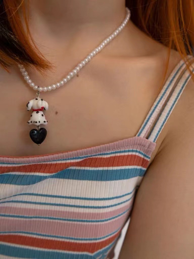 Korean style cartoon cute spotted dog lovely pearl necklace clavicle chain women's casual fun sweater chain neck chain fashion