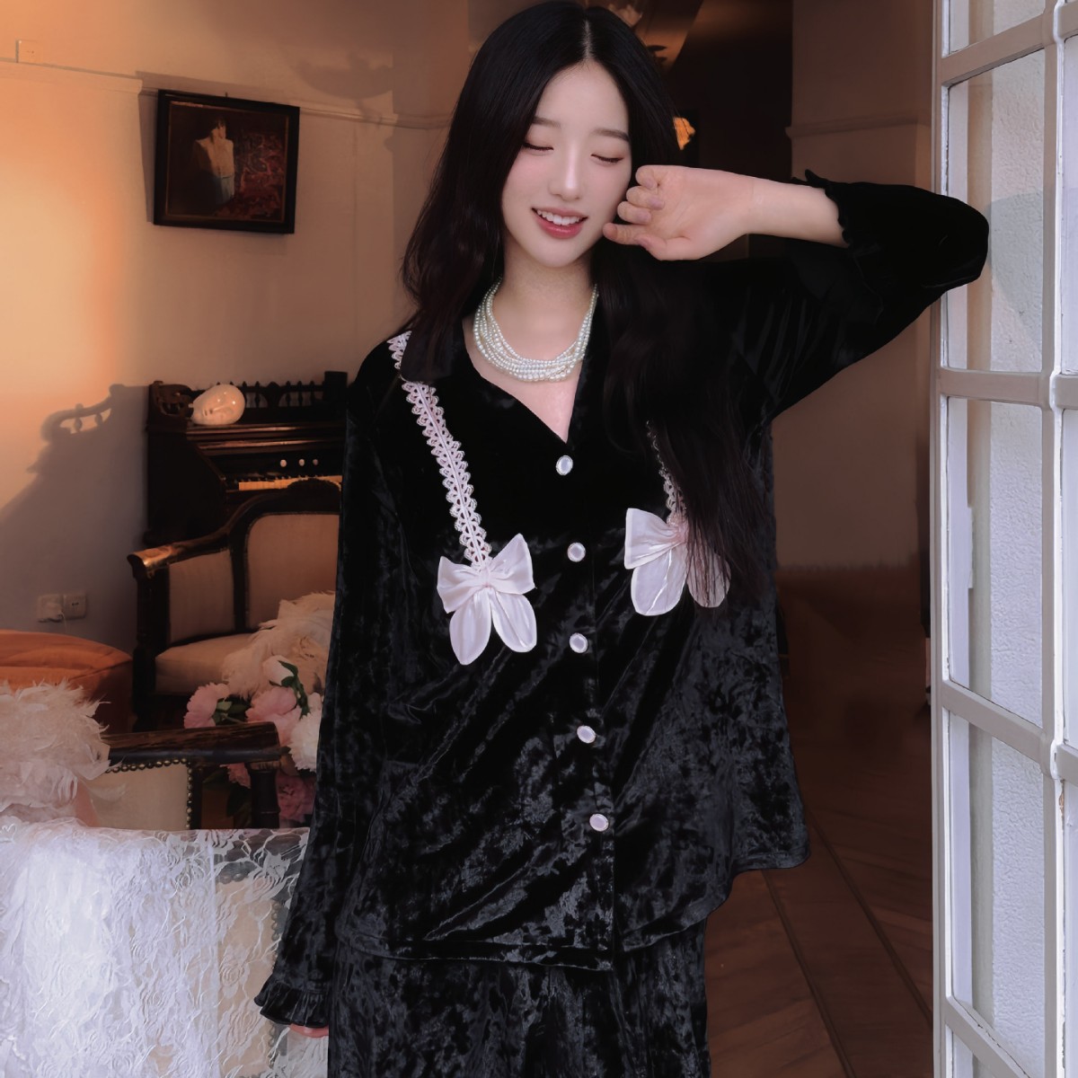 Angel Sleepwear 80087 Autumn and Winter Velvet Internet Celebrity Pajamas Diamond Velvet Comfortable Warm Cute Bowknot